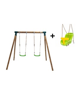 Altalena doppia in legno rotondo Masgames KIBO XL + seggiolino per bambini